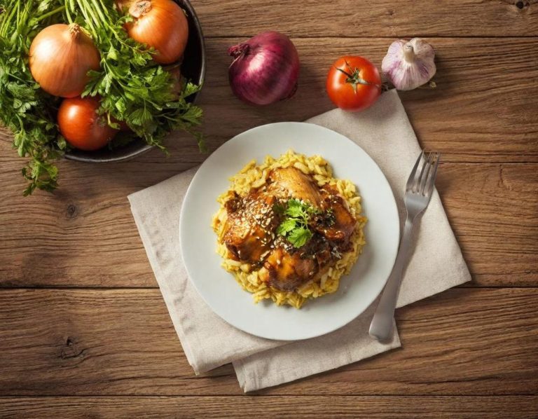 Pollo , salsa de champiñones , cebolla