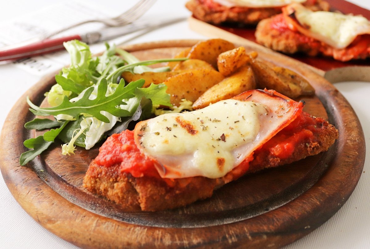 Lomo de cerdo , parmesano , york cocido ,