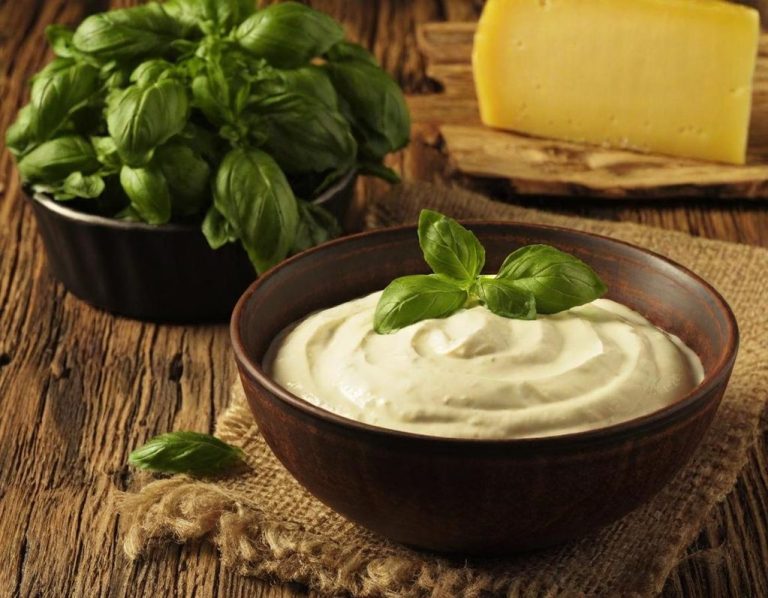 rúcula , queso gouda y salsa de yogurt